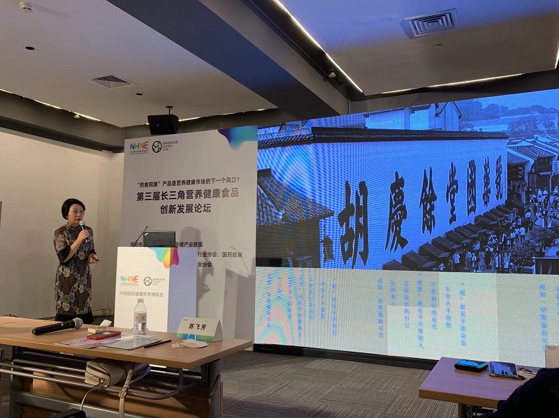 本次會議特別邀請了我司陳飛芳總經理作:《食藥兩用本草膏的開發和市場趨勢》的專題發言。