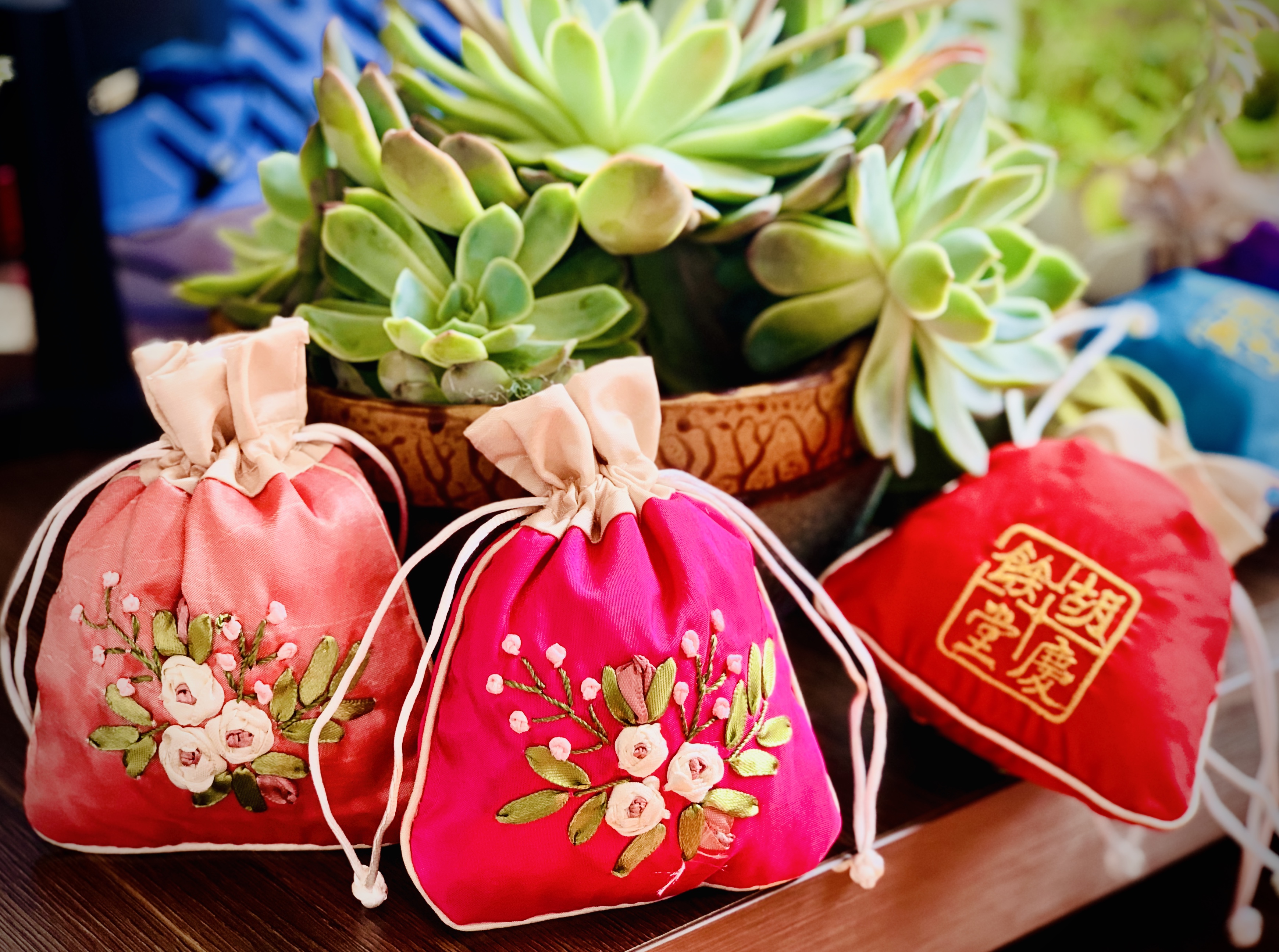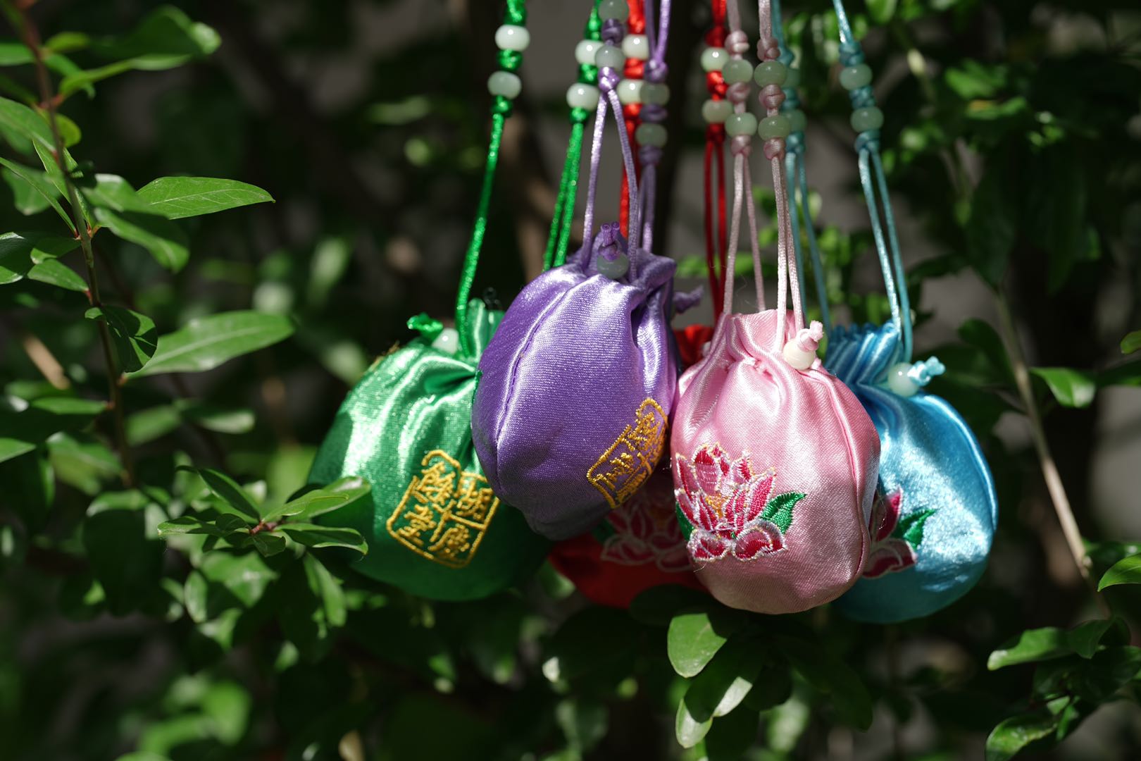 傳統香囊:內含驅除蚊蟲、祛暑勝濕、僻穢化濁類純正天然草本,不含任何化學合成香料,可安全佩、掛